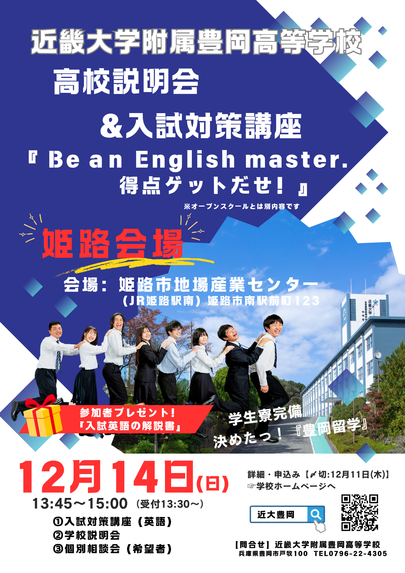 12月14日(日)【高校】学校説明会&入試対策講座(姫路市)
